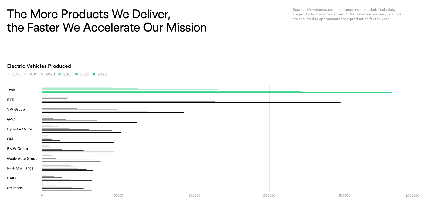 特斯拉 2023 年全球生产交付超 180 万辆电动车,一辆电动车可实现碳减排 51 吨