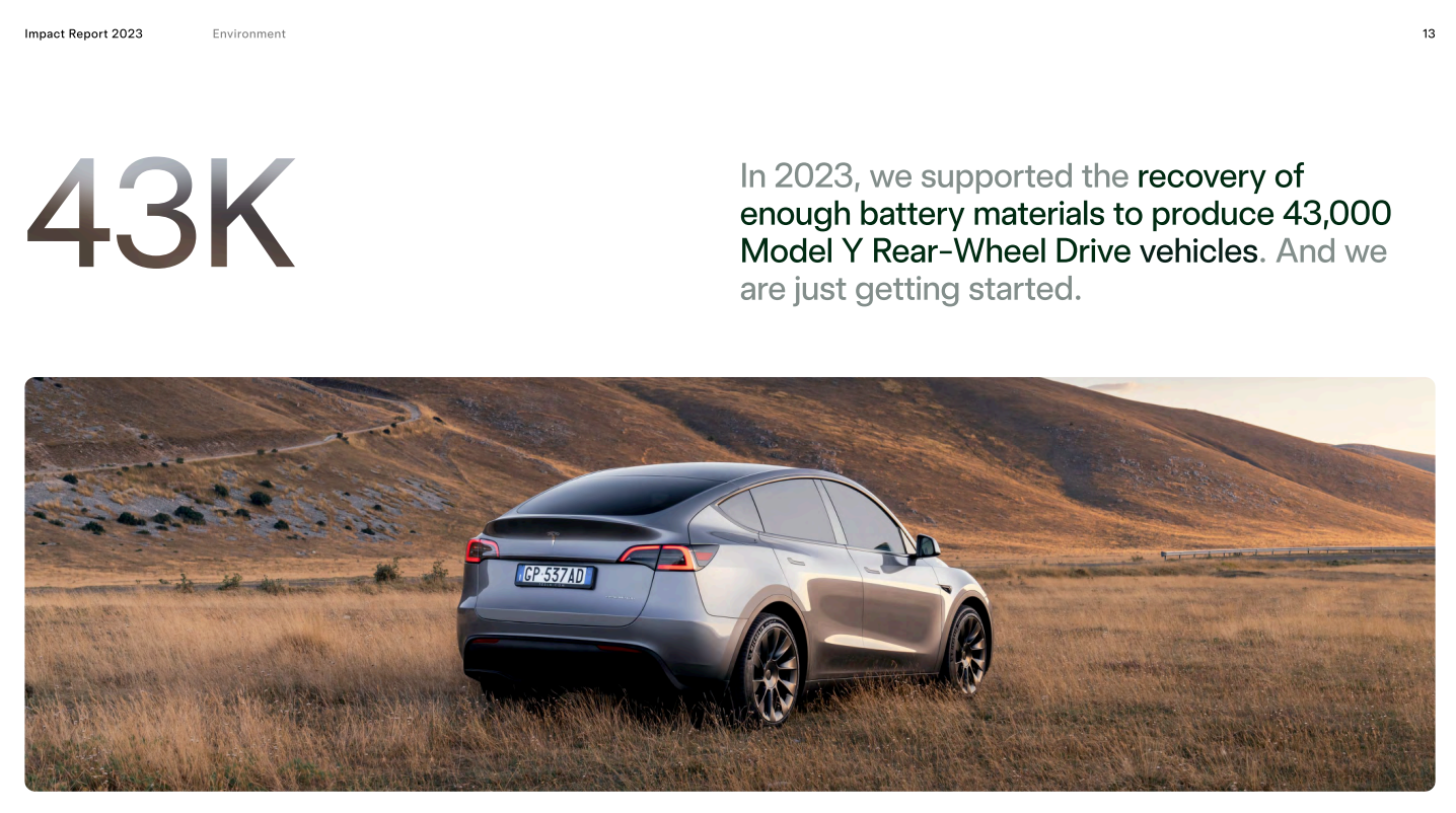 2023 年特斯拉客户减排二氧化碳当量超过 2000 万吨;上海超级工厂生产废料回收利用率达 94%。
