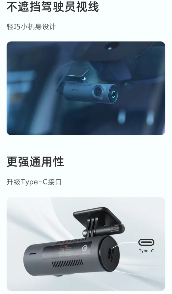 M310 采用小巧机身设计,不遮挡驾驶视线;采用 Type-C 接口,通用性提升。
