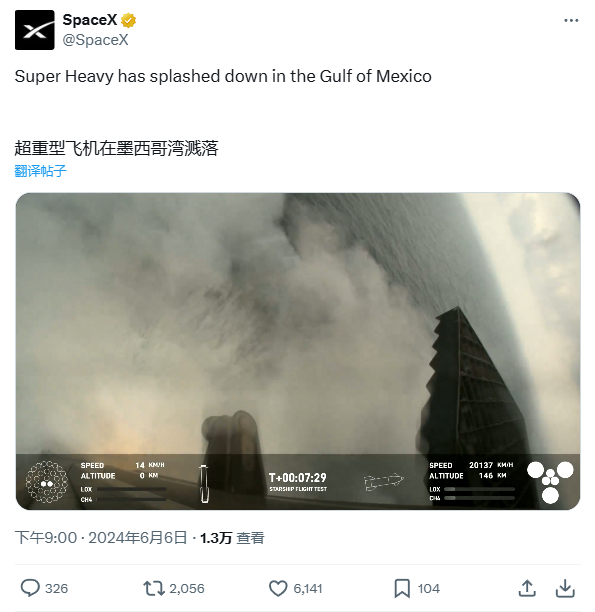 IT之家 6 月 6 日消息,北京时间 6 月 6 日晚 20:50 左右,SpaceX 星舰点火成功,开启第四次试飞任务,随后按计划与超重型助推器完成分离。