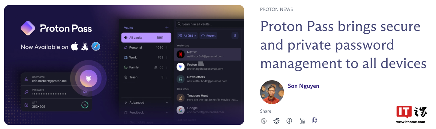 IT之家 6 月 7 日消息,Proton 旗下的密码管理软件 Proton Pass 宣布,推出 macOS 和 Linux 桌面应用程序。