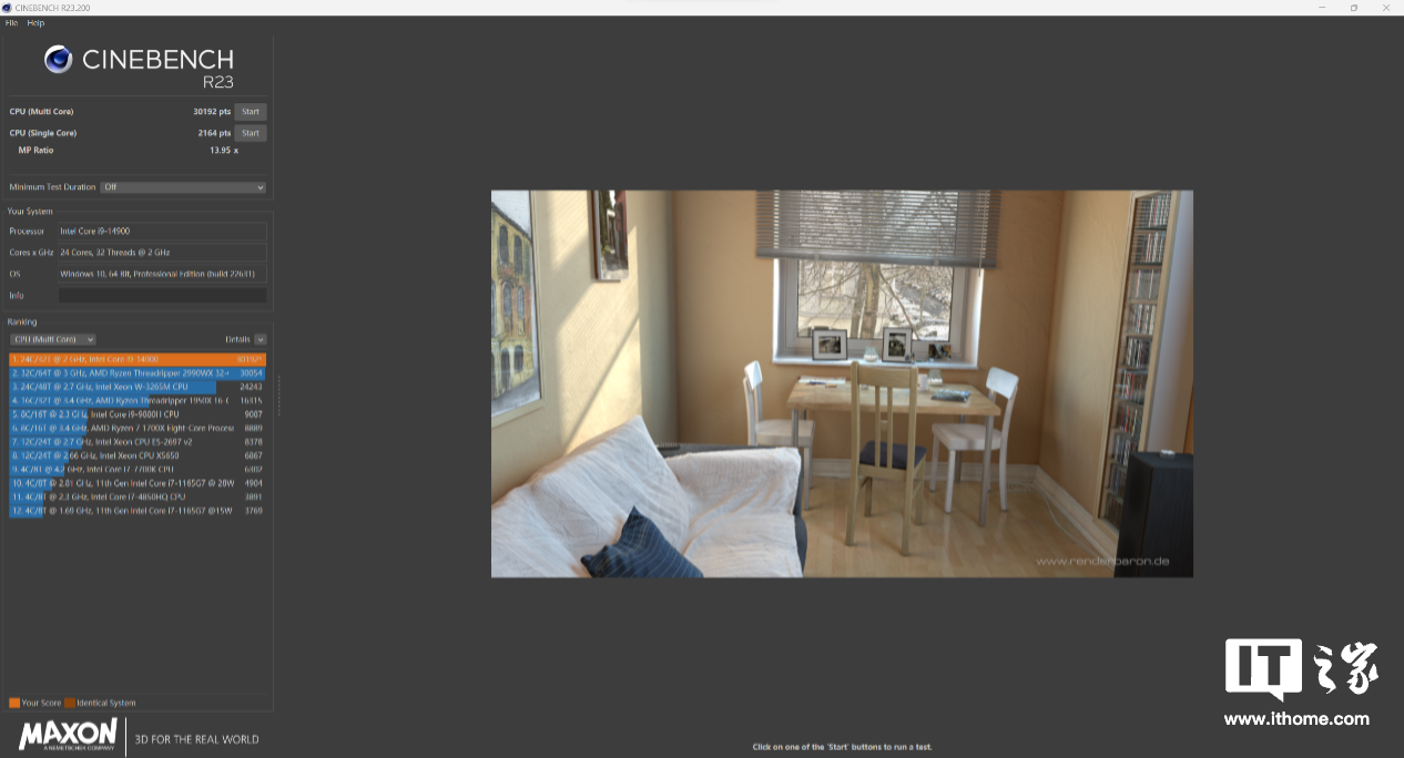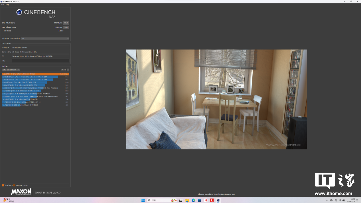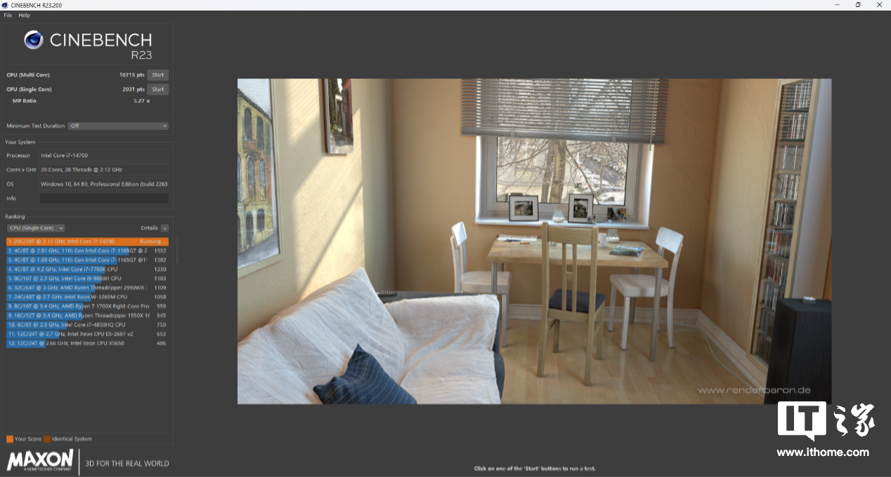 首先是 CineBench R23 的测试,体积最小的 ThinkCentre M760q 单核得分 2031 分,多核得分 10715 分。