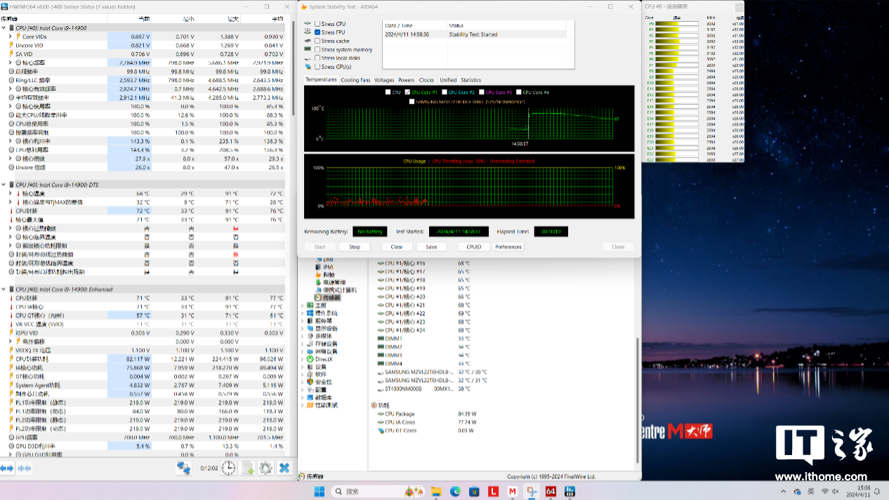 大号体积的 ThinkCentre M960t 单烤 FPU 项目,CPU 功耗稳定在 84W 左右,CPU 温度 71 度,P 核频率最高为 3.1GHz。