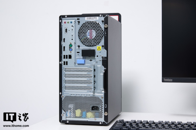 最后我们再看看 ThinkCentre M960t 这款标准塔式机箱的台式机,它的机箱体积已经来到了 17L,相比中号的 ThinkCentre M760s 体积几乎增加了一倍。但是相比大家平时装机的中塔、全塔式机箱依旧小了一大圈,在空间占用上依旧具有优势。