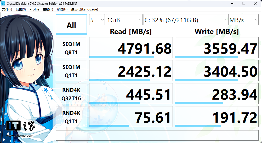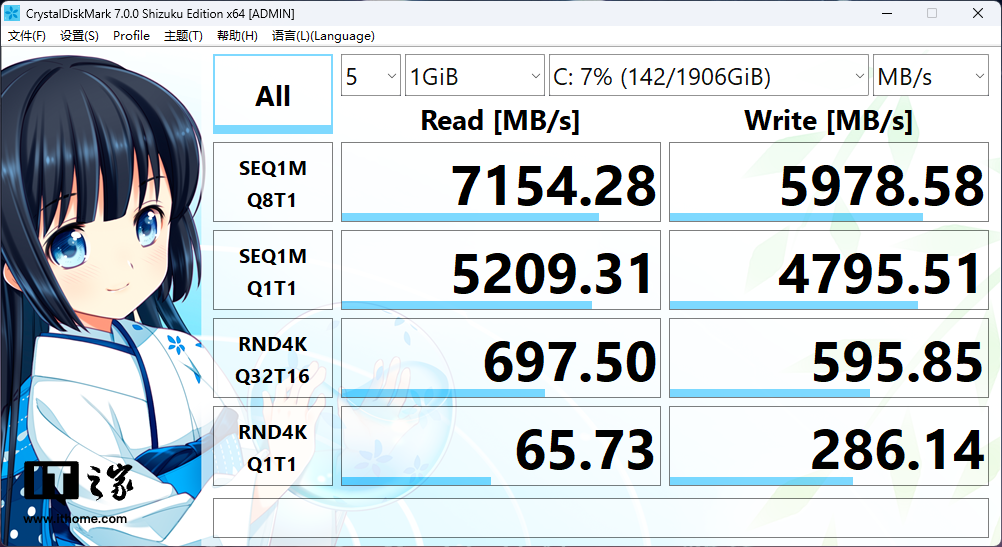 ThinkCentre M960t硬盘方面,ThinkCentre M760q 的大小只有 256GB,读取分数接近 5000MB/s,写入 3500MB/s左右。M760s 和 M960t 都是 2TB 固态硬盘,读写速度都可以到 7000MB/s左右,写入速度则在 5000-6000MB/s左右。