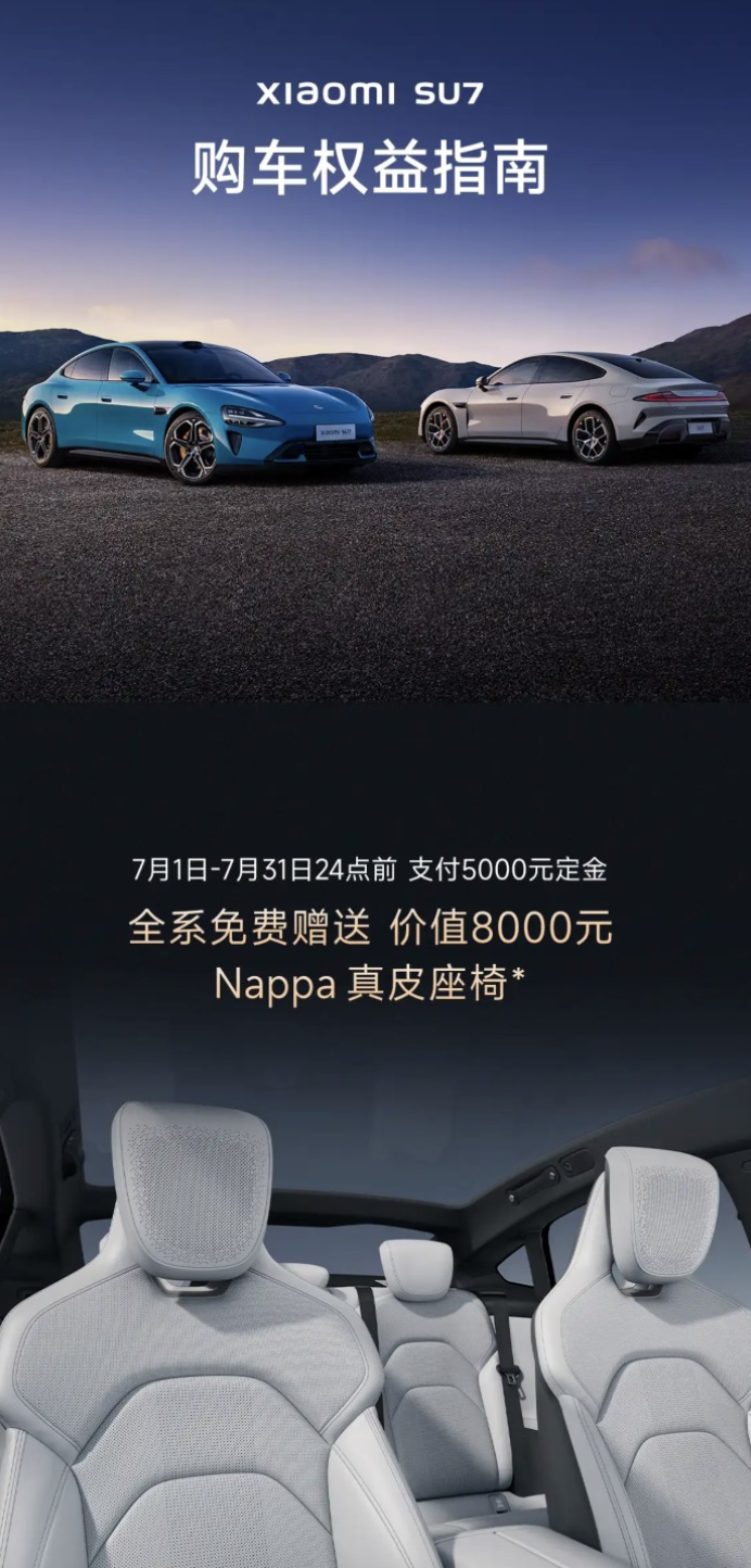 IT之家 7 月 1 日消息,小米汽车今日公布 7 月限时购车权益,与 6 月保持相比不变。7 月 1 日至 31 日,下定全系可享受: