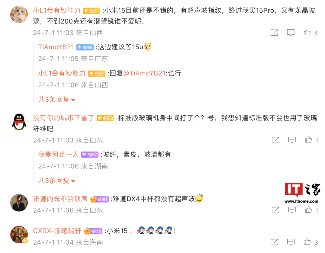 IT之家参考评论区获悉,这款手机有望为小米 15 标准版。