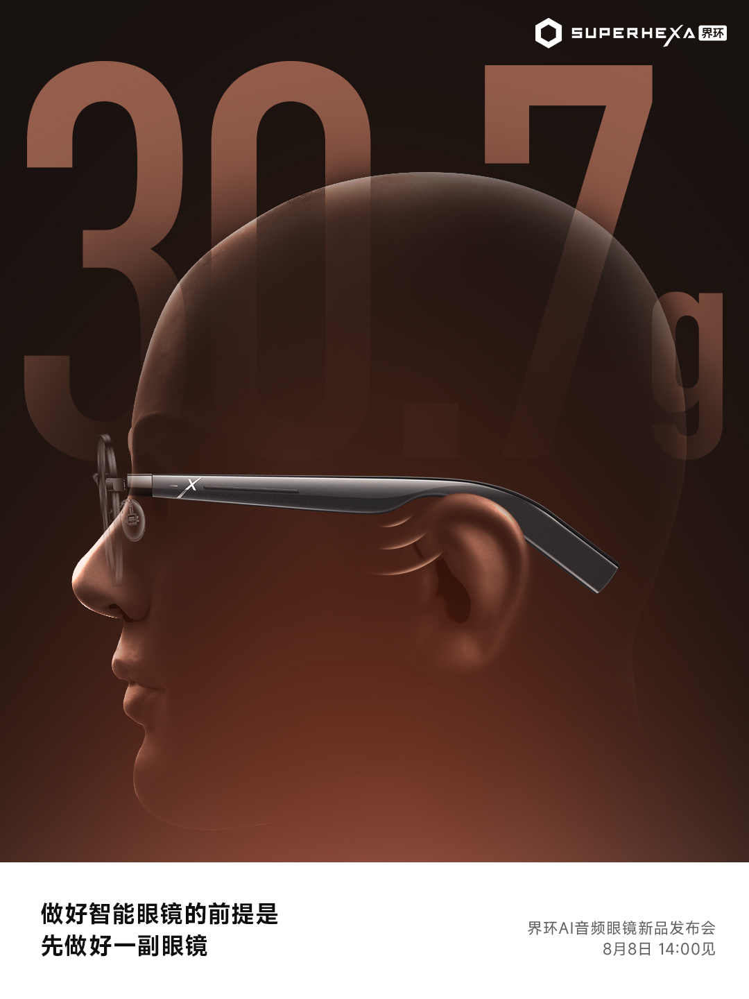 IT之家 8 月 7 日消息,界环新品发布会定档 8 月 8 日,将推出一款 AI 音频眼镜,官方今日公布界环 AI 音频眼镜新品外观设计。