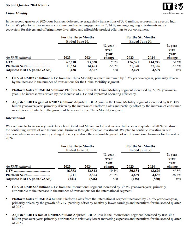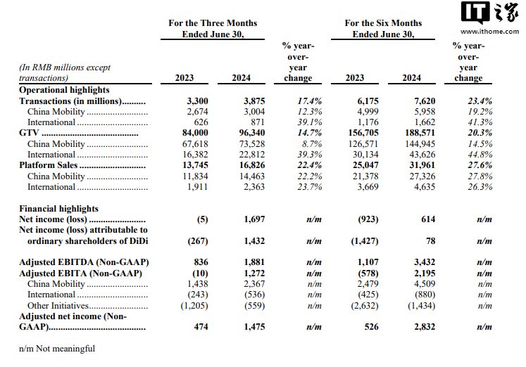 IT之家 8 月 21 日消息,今日晚间,滴滴发布了 2024 年二季度业绩报告。亮点如下: