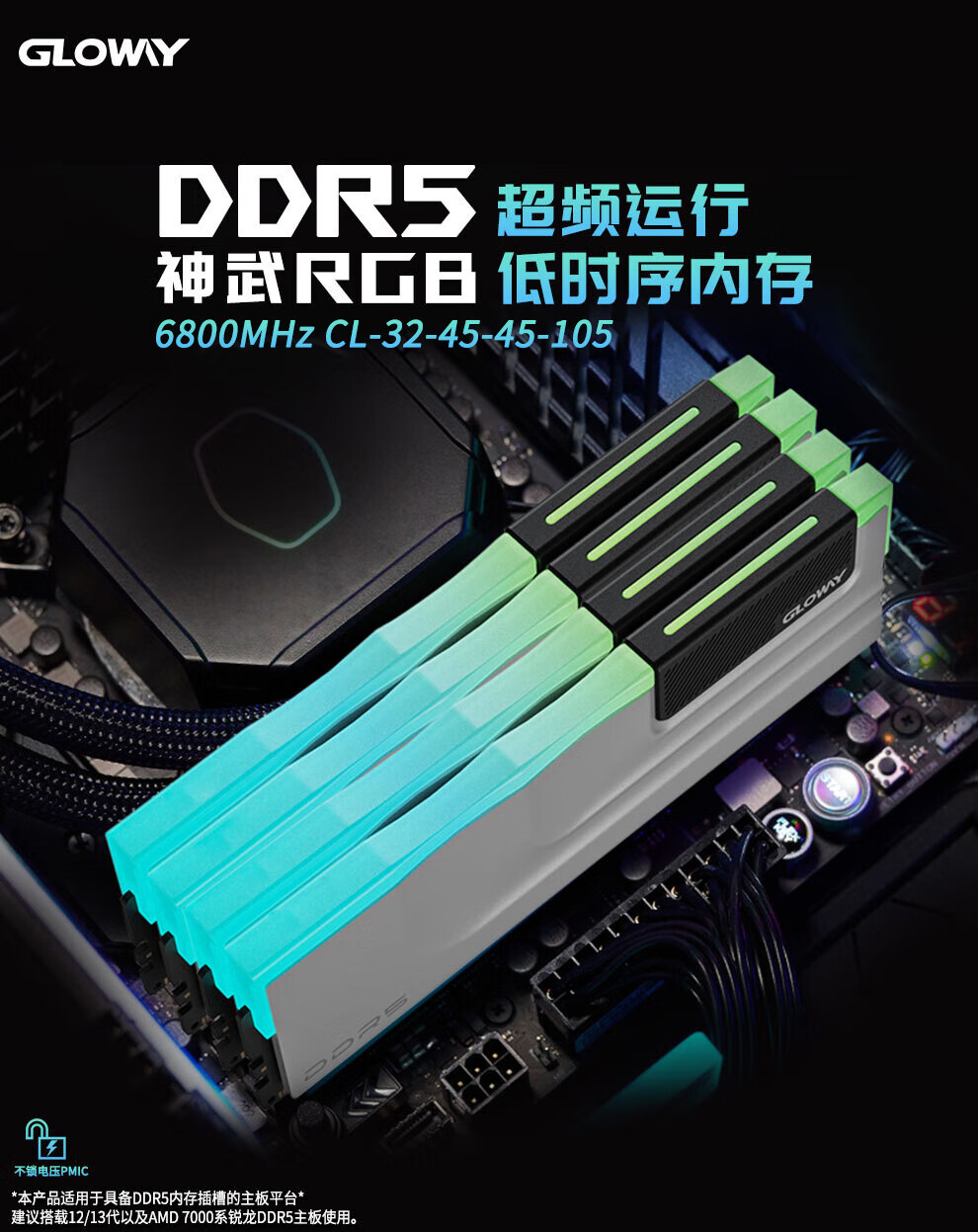 光威神武 RGB 系列 DDR5 6800 台式机内存条,采用海力士 A-die 颗粒,时序低至 CL32,32GB(16GB*2)套装日常价 859 元。
