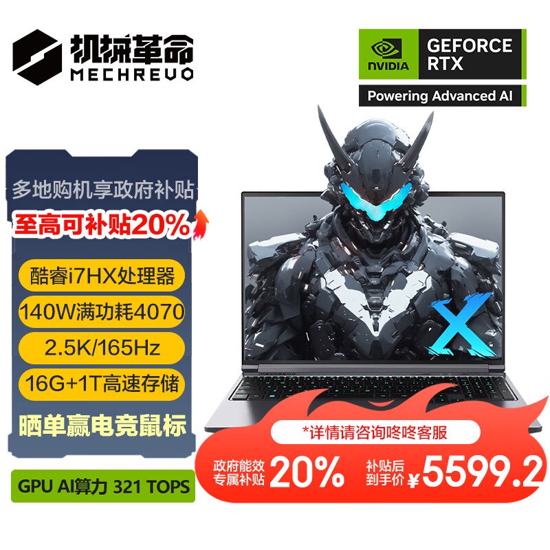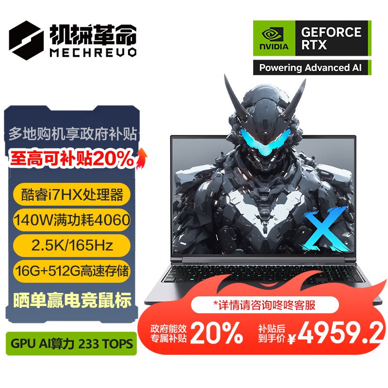 机械革命 极光 X 16 英寸 游戏本 (i7-12800HX 16G 512G RTX4060 2.5K 屏 165Hz)
