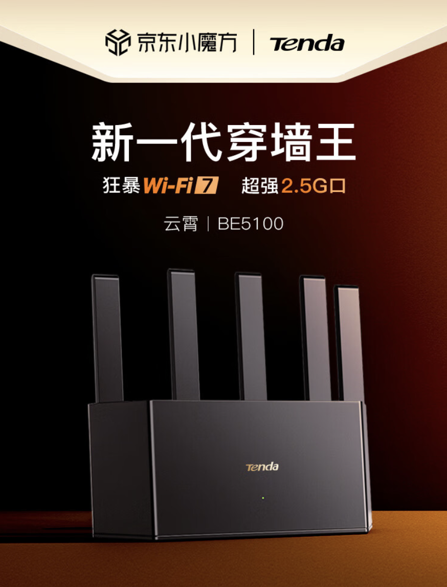 IT之家 10 月 21 日消息,腾达云霄 BE5100 Wi-Fi 7 路由器将于今晚 8 点在京东现货开售,这款路由器主打“5 颗 FEM、NFC 一键联网”,实际到手价 209 元。