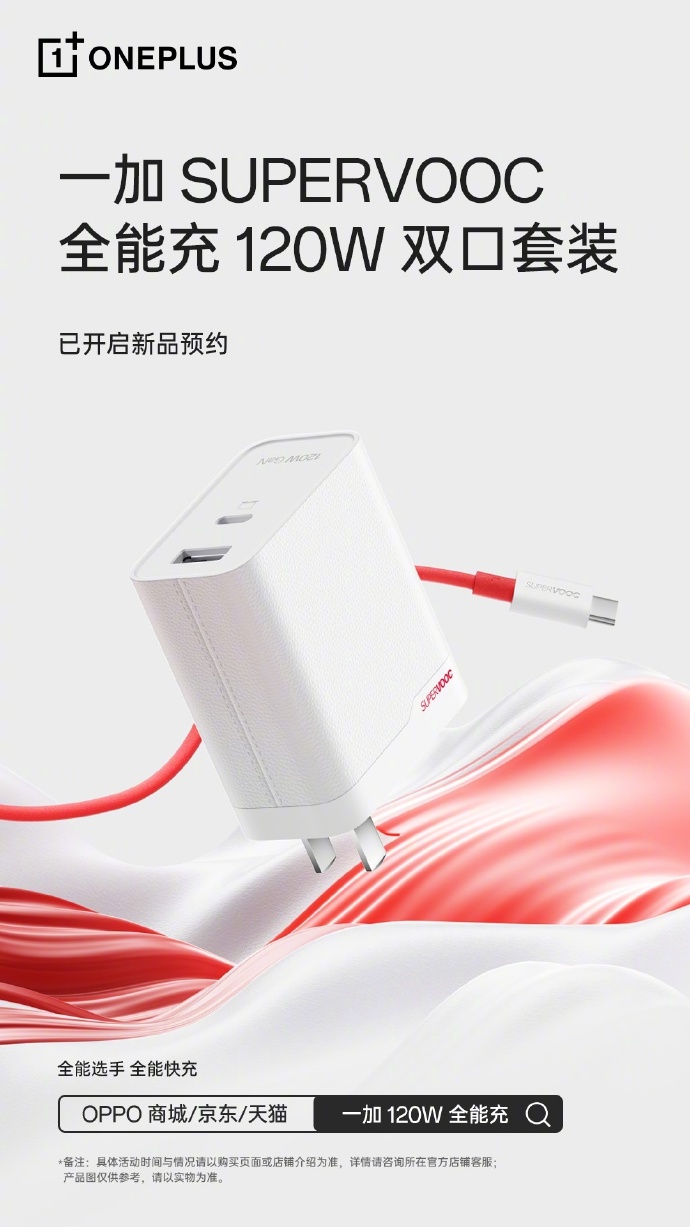 可以看到,这款新品采用一加经典红白配色,充电头提供 USB-A 和 USB-C 两个接口,快充线则采用红线 + 白头的搭配设计。在此之前,一加还公布了极木 100W 移动电源、磁吸小涡轮 AIRVOOC 50W 磁吸无线充两款配件产品。