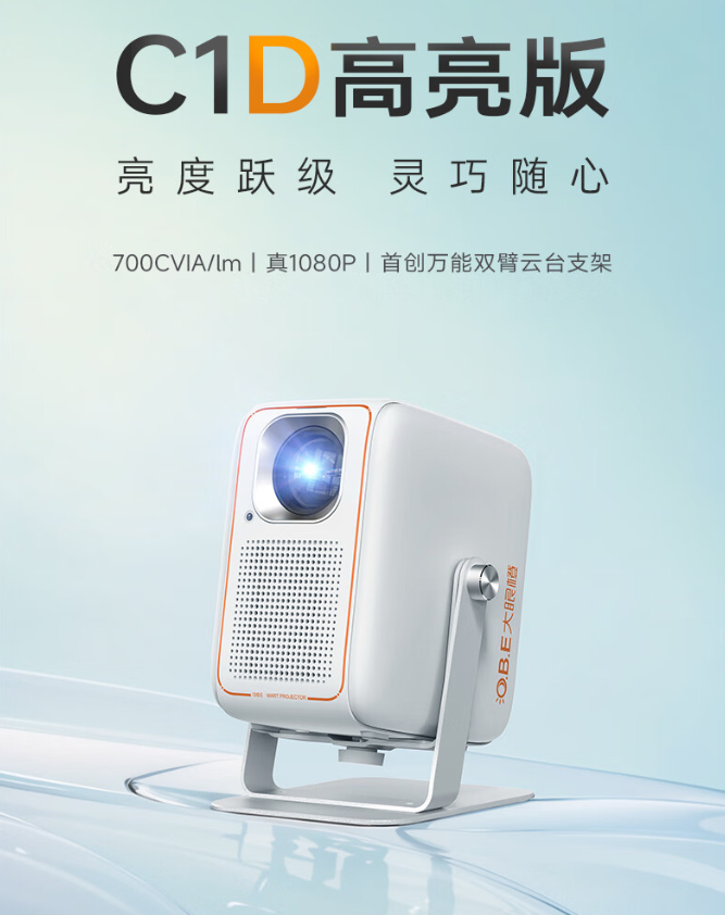 IT之家 10 月 25 日消息,大眼橙 C1D 高亮版现已发布,该款投影仪拥有 700CVIA / lm 亮度、配备双臂云台支架,首发 1499 元。