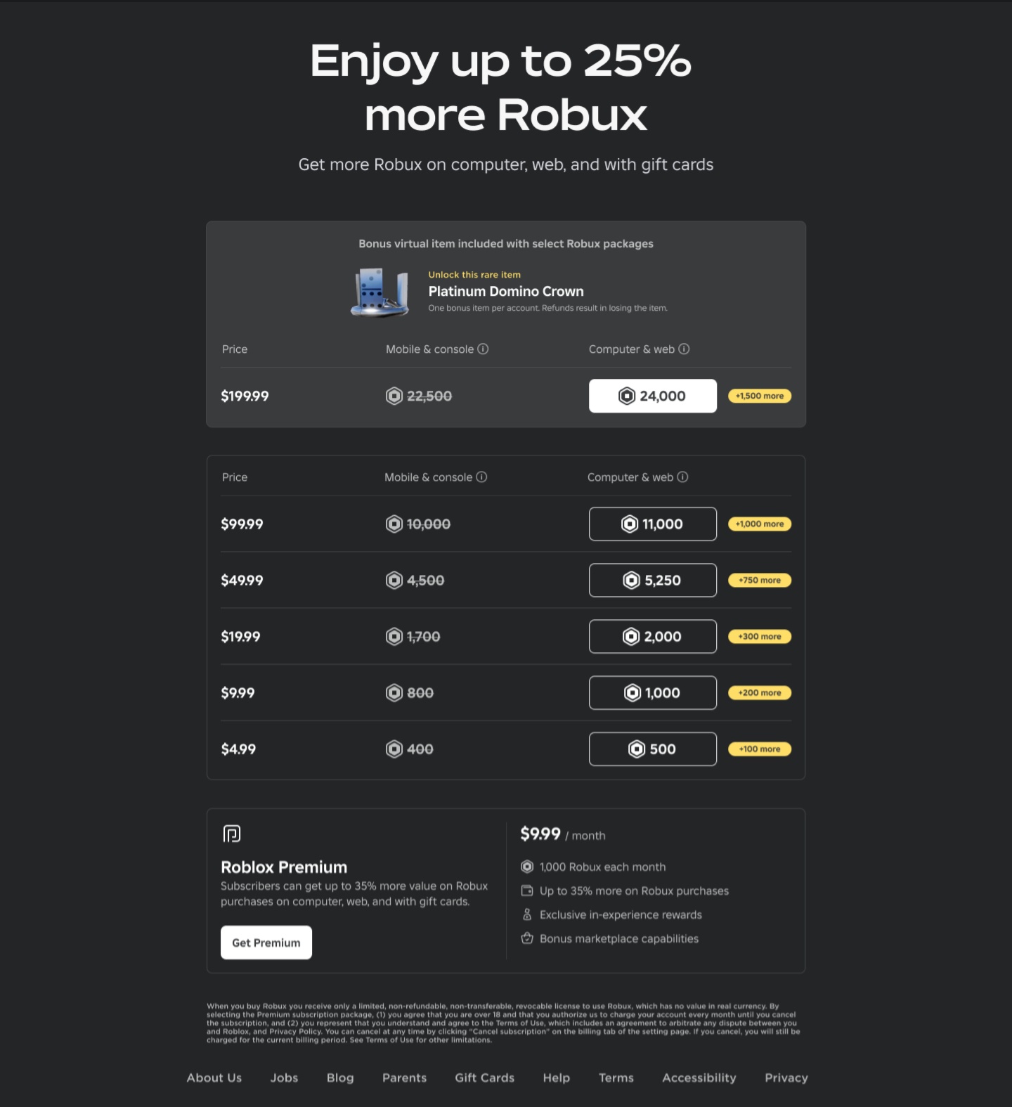 是的。在 PC 或 Web 上兑换礼品卡的用户,包括今天之前购买的礼品卡,均可获得高达 25% 的额外 Robux。