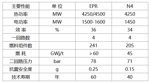 1、 EPR 的功率(约 1600 兆瓦)比近期建设的反应堆功率(约 1450 兆瓦)更高。