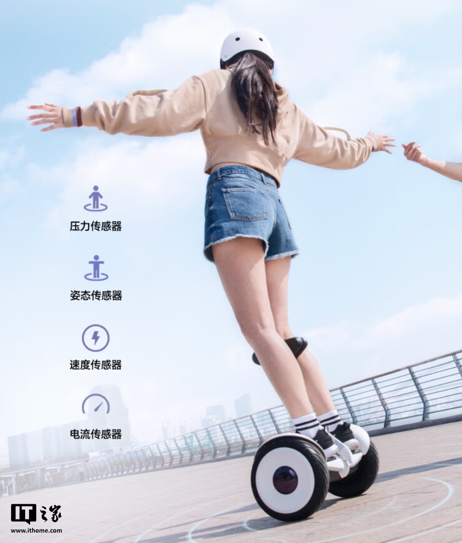 迷你九号平衡车可选脚控、手控、遥控玩法,自研体感技术可自动识别障碍和斜坡,每秒 200 次动态调整平衡状态。