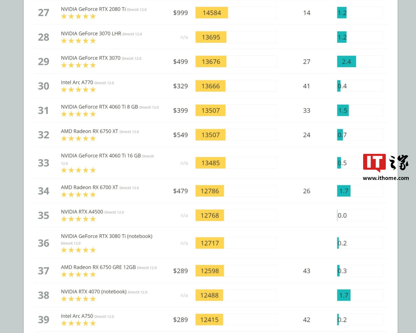 根据IT之家的查询对比,13821 的分数在移动端明显强于 RTX 3080 Ti(12717 分)和 RTX 4070(12488 分),同时还高于桌面端的 RTX 3070(13676 分)和 RTX 4060 Ti(8GB 款 13507 分、16GB 款 13485 分)。