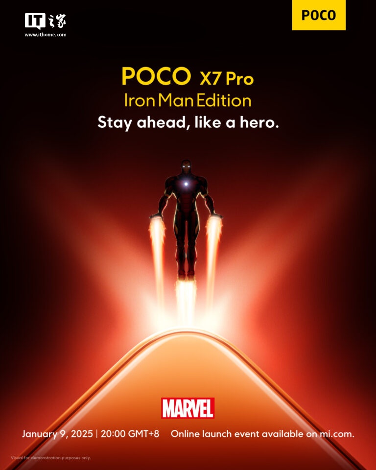IT之家 1 月 2 日消息,小米 Poco X7 系列手机将于 2025 年 1 月 9 日迎来全球发布,届时还将同步推出一款 Poco X7 Pro 钢铁侠限定版。这款限定版以标志性的钢铁侠元素为设计灵感,从外观到软件都进行了深度定制,为漫威粉丝和科技爱好者带来独特体验。
