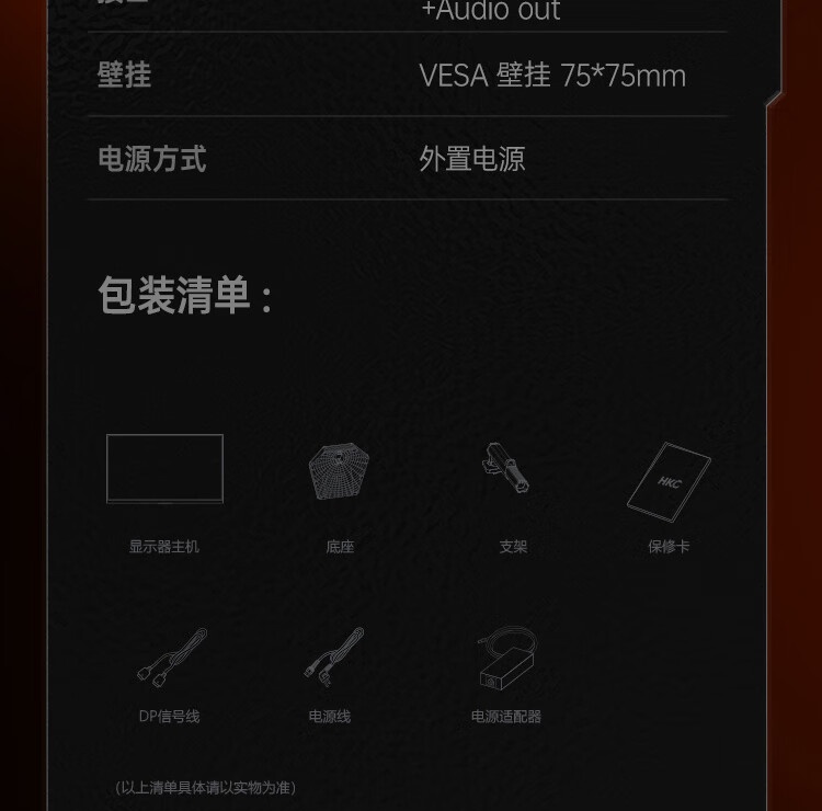 IT之家附 HKC“猎鹰二代 G27H4Pro”显示器产品参数表如下: