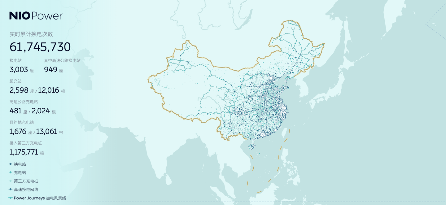 IT之家 1 月 3 日消息,蔚来汽车今日宣布在全国建成 3000 座换电站,用户累计换电超过 6100 万次。