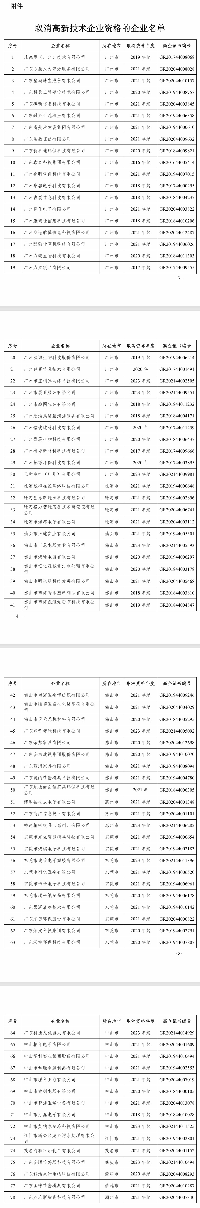IT之家 1 月 3 日消息,据广东省科学技术厅官网 2024 年 12 月 19 日消息,根据日常管理发现的问题,广东省高新技术企业认定管理工作领导小组办公室按照《高新技术企业认定管理办法》(国科发火〔2016〕32 号)等有关文件规定,经地市核查、专家复核、取消告知等程序,研究决定取消凡德罗(广州)技术有限公司等 78 家企业高新技术企业资格。