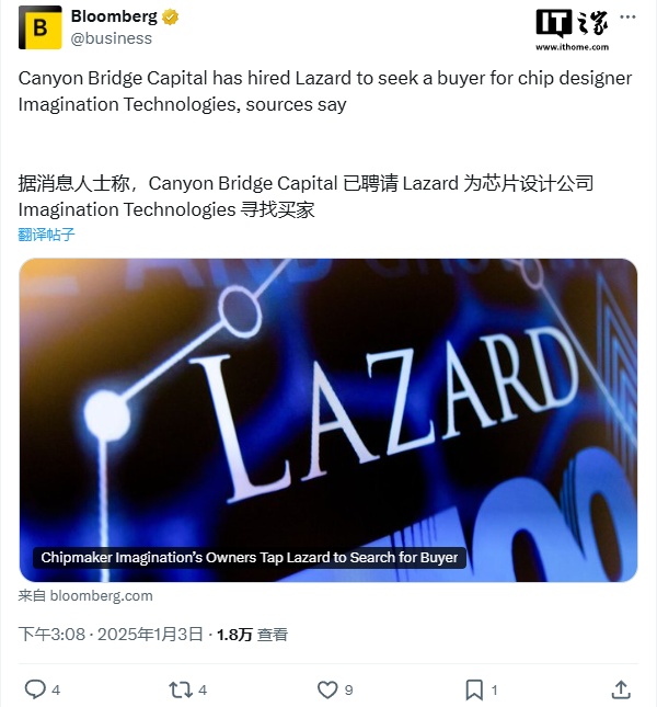 IT之家 1 月 3 日消息,昔日苹果 GPU 供应商 Imagination 在 2017 年 11 月被私募股权基金凯桥资本(中国国新控股)以 5.5 亿英镑(IT之家备注:当前约 49.96 亿元人民币)收购。