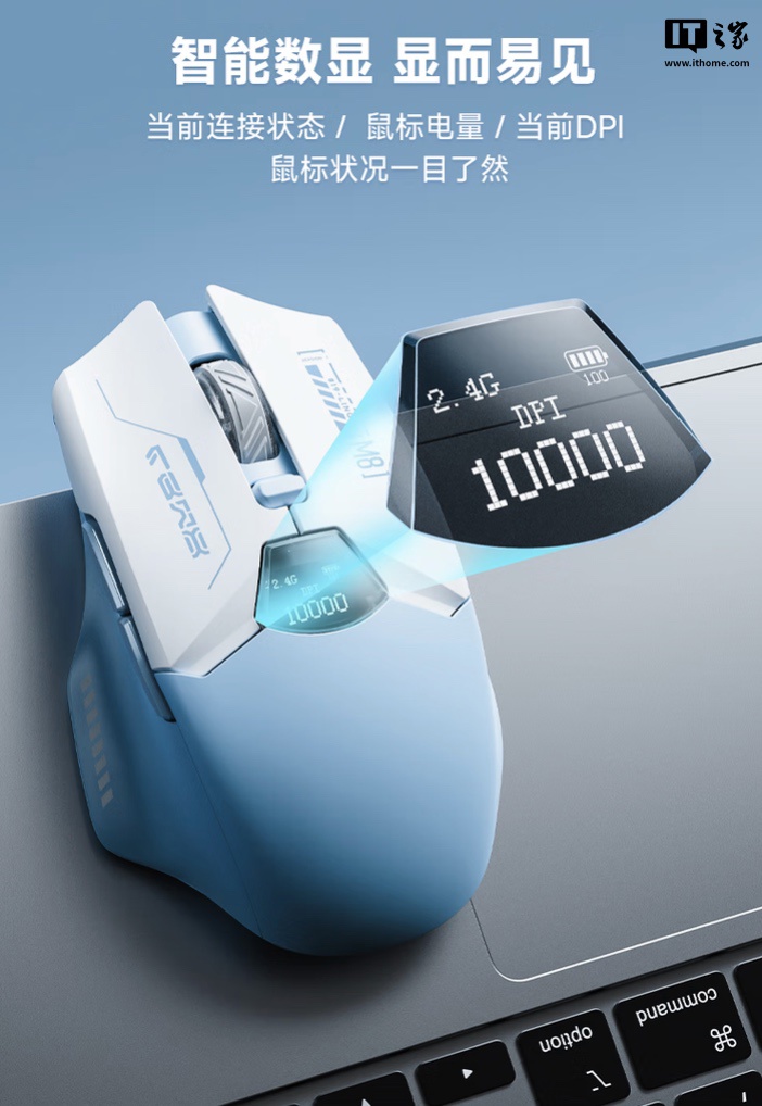 IT之家 1 月 3 日消息,凌豹 M8 三模鼠标将于今天 20:00-23:59 首销,首发价 49 元(明起为 99 元原价),这款鼠标主打“PAW 3325 芯片、自带 LED 屏显”。