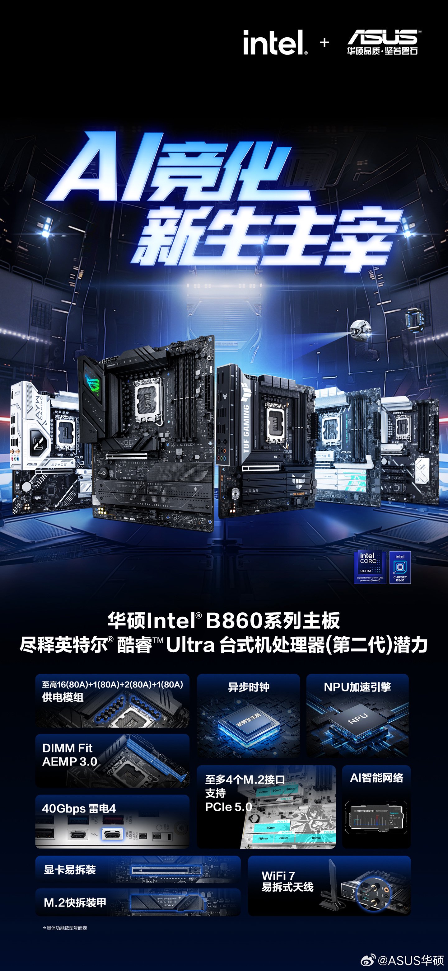 IT之家 1 月 6 日消息,CES 2025 将于今晚开幕,华硕对外正式公布了新一代英特尔 B860 系列主板、AMD B850 / B840 系列主板,IT之家整理如下: