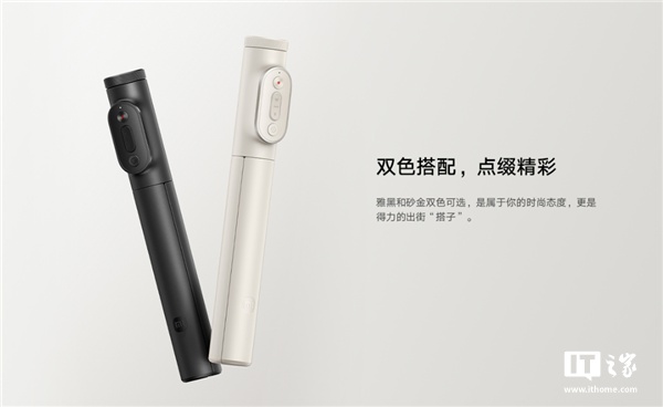 IT之家 1 月 7 日消息,小米今日发布了小米变焦支架自拍杆 2,售价 99 元,提供雅黑色和砂金色两款配色。