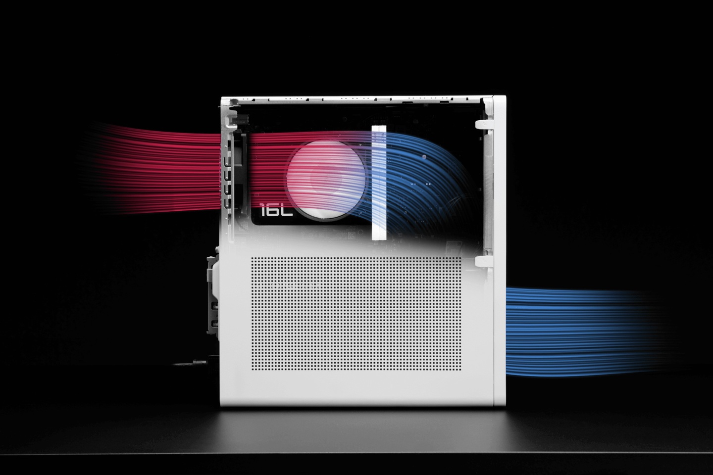 该系列整机采用前置 120mm RGB 风扇 + 后置 90mm 风扇的散热系统,处理器配备双热管 92mm 风扇下压式风冷,顶配搭载 500W 白金转换效率电源,可选纯黑无左侧玻璃小窗或黑白配“熊猫色”有玻璃侧窗两种外观。