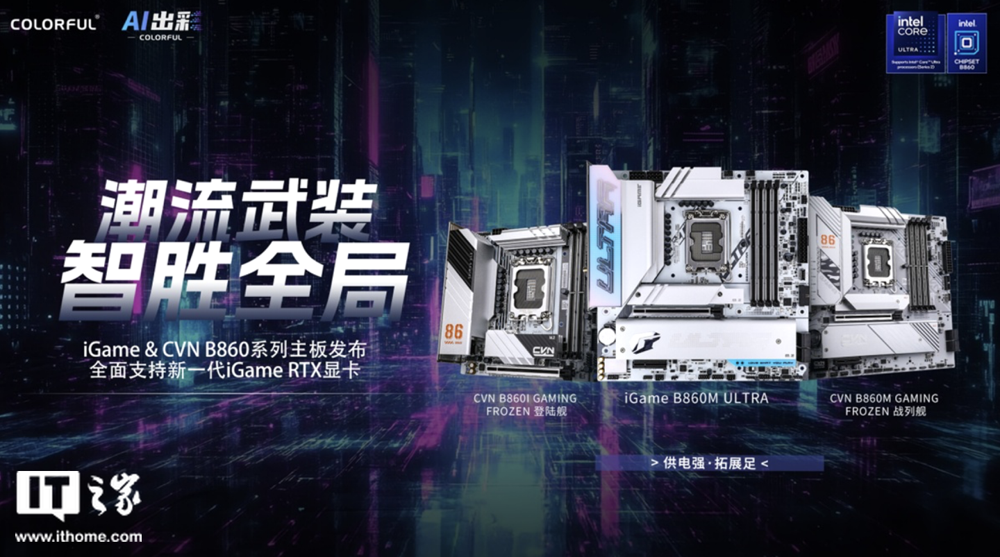 IT之家 1 月 7 日消息,据七彩虹官方新闻稿,七彩虹宣布在 CES 2025 中推出旗下 iGame、CVN 及战斧系列 B860 主板,兼容英特尔全新 Non-K 系列酷睿 Ultra 台式机处理器,将于 1 月 13 日首销,不过国行定价还未公布。
