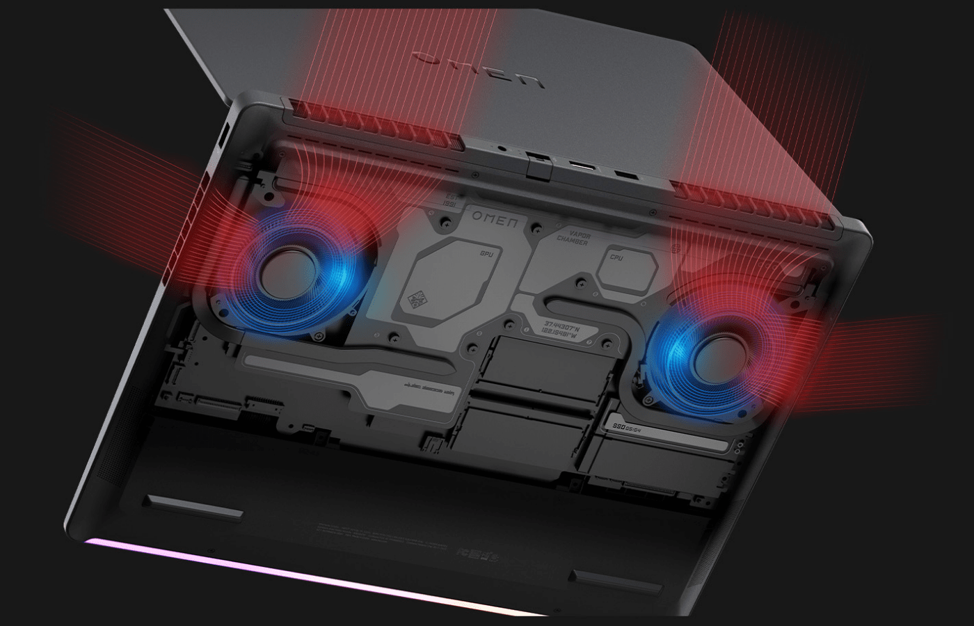 OMEN 16 MAX 游戏本采用双风扇 + 均热板散热系统,采用 Cryo Compound 混合液金导热材料,支持手动超频 CPU 与 GPU。其所配风扇支持定期反转弹尘技术,可保障长期使用后的性能表现,同时降低清灰维护需求。