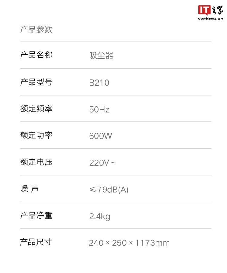 IT之家附吸尘器规格如下: