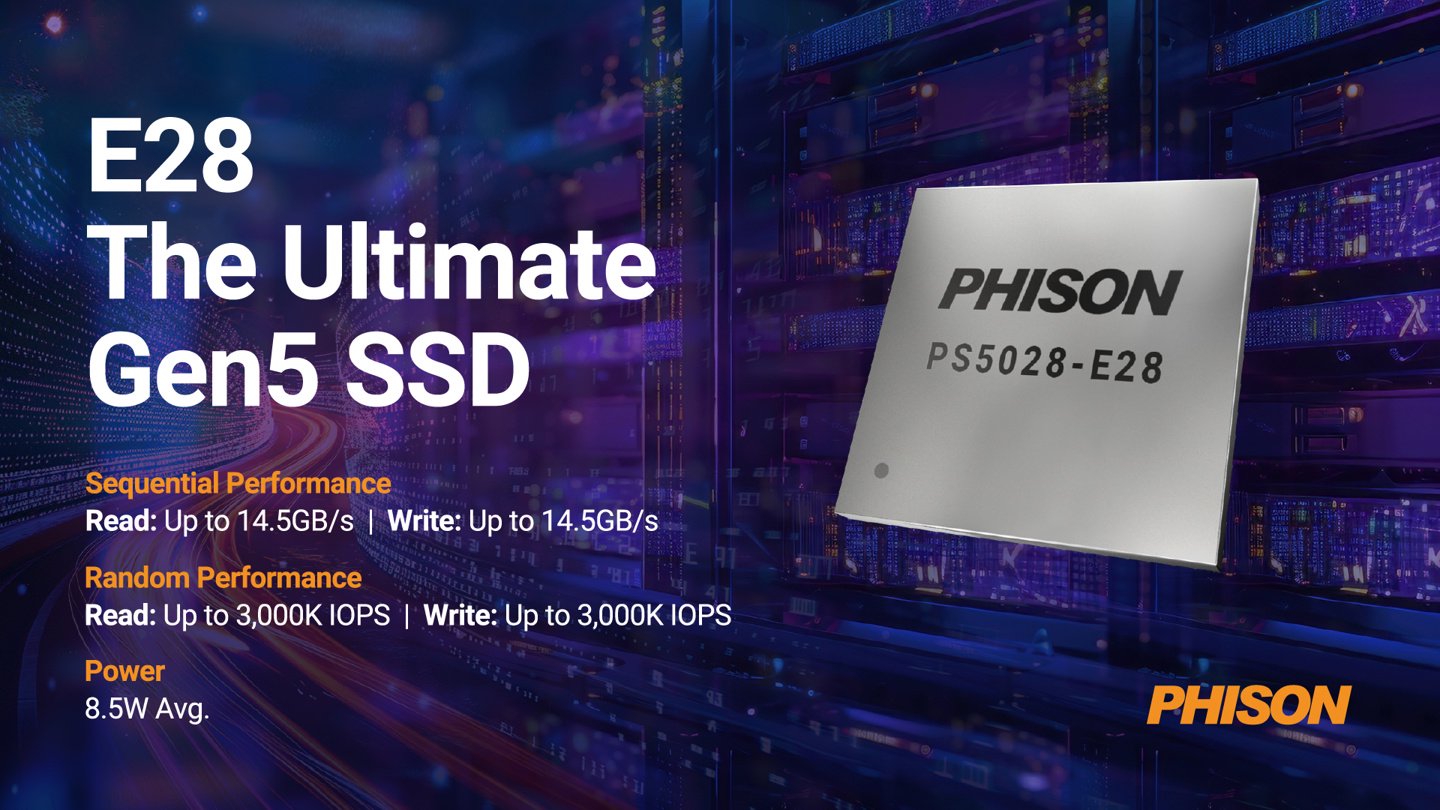 IT之家获悉,群联 PS5028-E28 主控配备 8 条闪存通道,支持 32CE,最大容量支持达 32TB,适配 4200MT/s I/O 接口速率闪存,同时其平均功耗降至 9.5W。