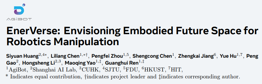EnerVerse 主要科研成员来自智元机器人研究院具身算法团队。论文共同一作黄思渊是上海交通大学与上海人工智能实验室的联培博士生,师从 CUHK-MMLab 的李鸿升教授。博士期间的研究课题为基于多模态大模型的具身智能以及高效智能体的研究。在 CoRL、MM、 IROS、ECCV 等顶级会议上,以第一作者或共同第一作者身份发表多篇论文。另一位共同一作陈立梁是智元机器人的具身算法专家,主要负责具身空间智能与世界模型的研究。