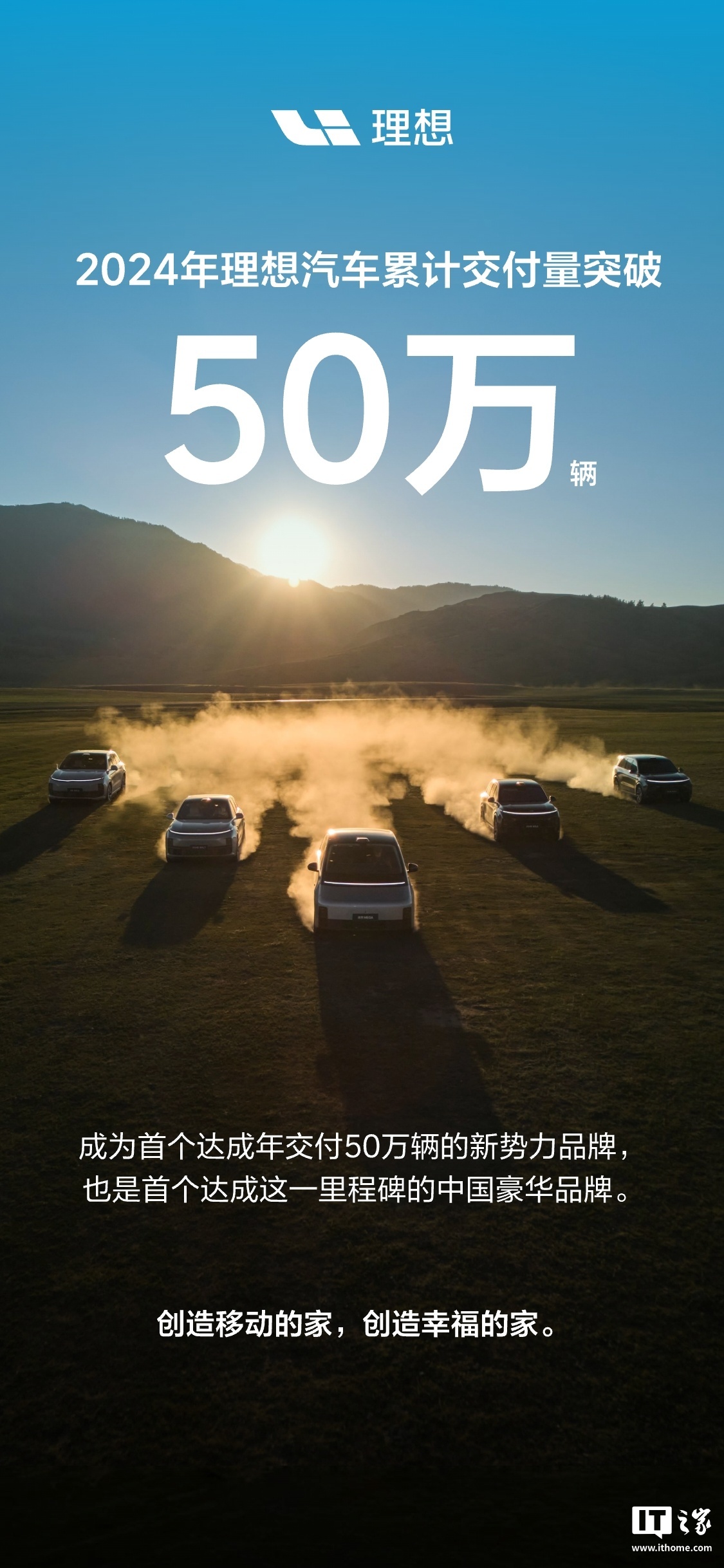 据IT之家此前报道,理想汽车在去年 12 月底宣布,2024 年理想汽车累计交付量突破 50 万辆。成为首个达成年交付 50 万辆的新势力品牌,也是首个达成这一里程碑的中国豪华品牌。
