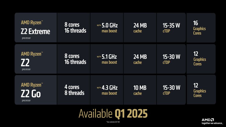 新机搭载了 AMD 最新发布的锐龙 Z2 Extreme 旗舰级 APU,采用 Zen 5 架构,8 核 16 线程,最高加速频率 5.0 GHz,24MB 缓存,TDP 功耗 15-35W,集成 16 个 RDNA 3.5 GPU 核心。