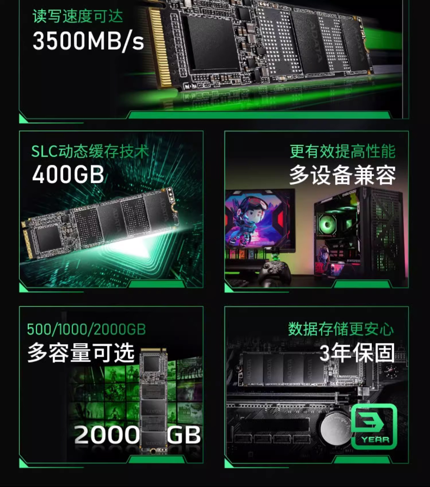 此外,威刚还将提供 3 年保修或依据 TBW 来进行保修,500GB / 1TB / 2TB 的 TBW 分别为 300TB / 600TB / 1200TB。