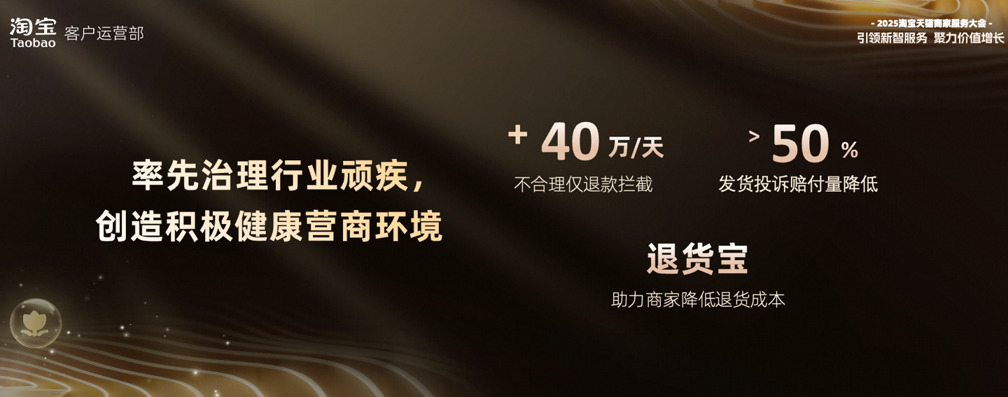 针对退换货成本问题,淘宝天猫将进一步优化“退货宝”机制。2025 年,淘宝天猫将试点部分用户开通模式,为商家使用“退货宝”提供更多样化选择。对于淘宝商家,“退货宝”将与淘宝大促解绑,淘宝商家可在平台大促期间自选是否使用“退货宝”产品,帮助中小商家进一步降低经营成本。