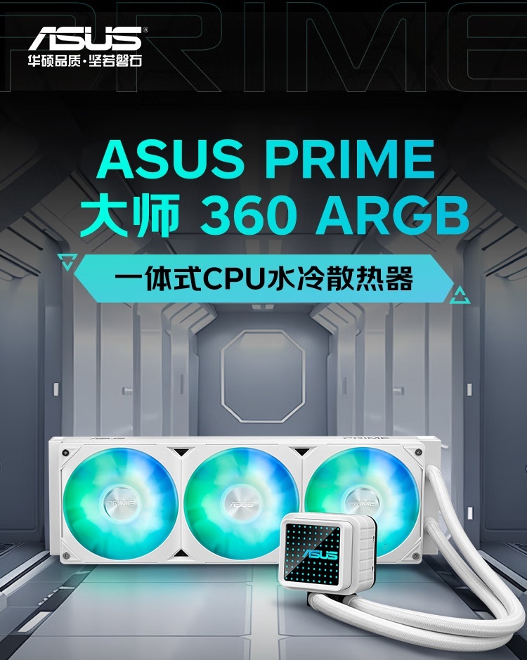 IT之家 1 月 9 日消息,华硕今日新推出了一款白色的 Prime 大师 360 ARGB 一体式 CPU 水冷散热器,京东显示为 599 元,1 月 15 日 17:30 开售。