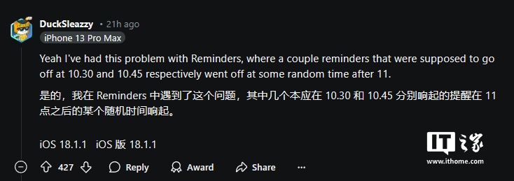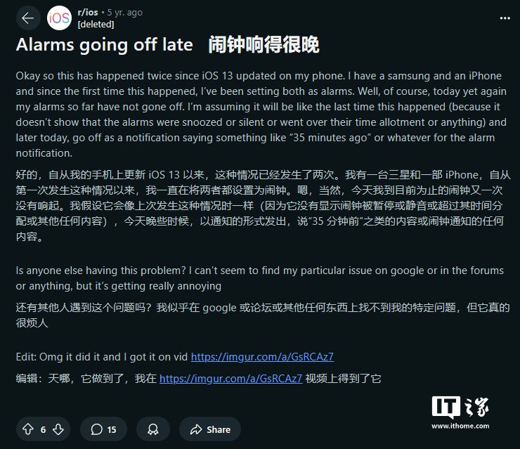 由于数百万用户每天依赖 iPhone 闹钟来提醒自己起床工作或上学,这一故障的影响可能是灾难性的。例如,一位用户提到,由于闹钟未能按时响起,他错过了一场重要考试,并决定改用实体闹钟以避免类似情况再次发生。此外,其他 Reddit 用户还反映,内置的“提醒事项”应用也存在任务未能按时提醒的问题,这表明故障不仅限于苹果的“时钟”应用。