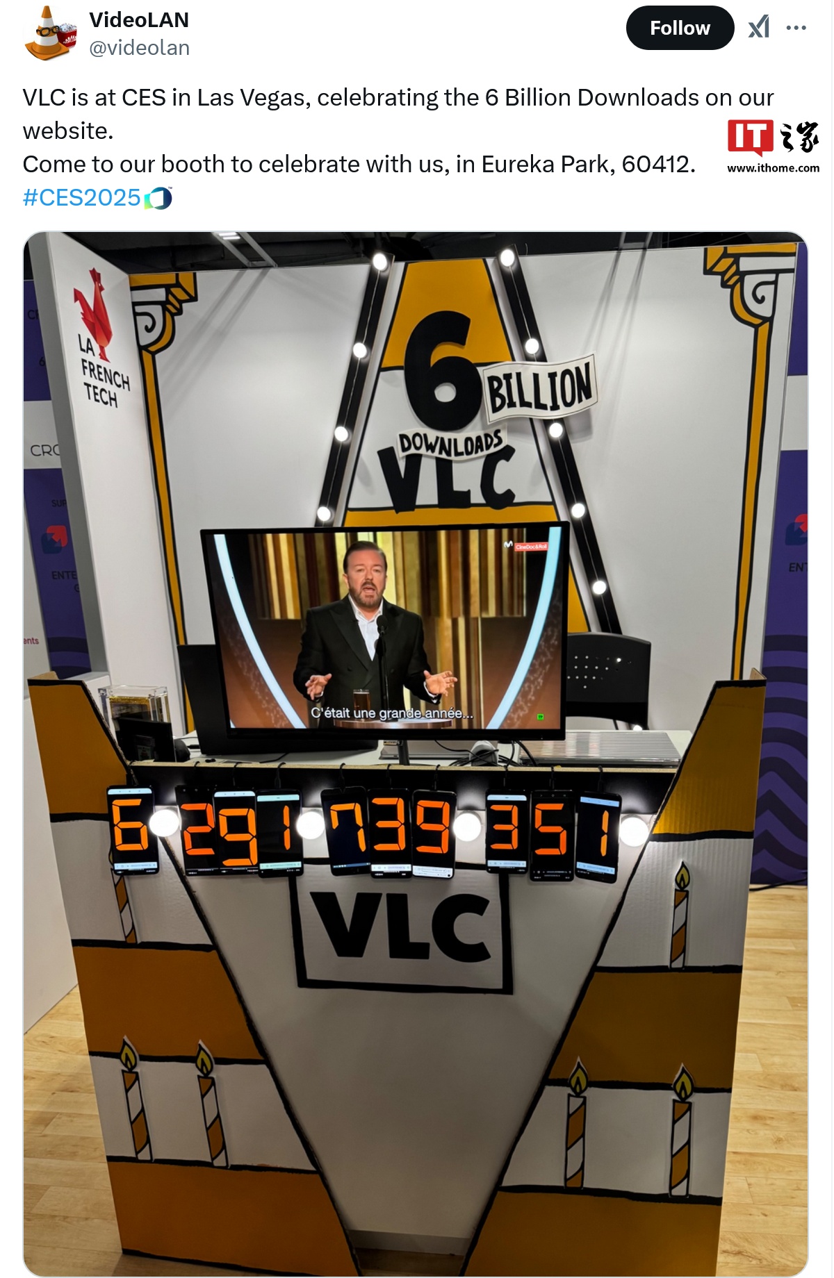 IT之家 1 月 10 日消息,开源媒体播放器 VLC 开发方 VideoLAN 在 CES 2025 上庆祝该播放器的累计下载次数突破了 60 亿大关。