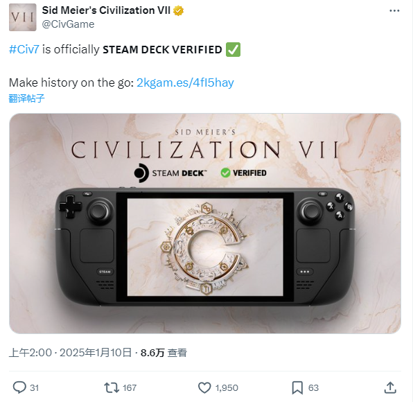 Firaxis 确认这款游戏已通过 Steam Deck 验证,Steam 可以在这款掌机上游玩。当然,通过 Steam 也能在 Mac 和 Linux 上运行,游戏支持简体中文。