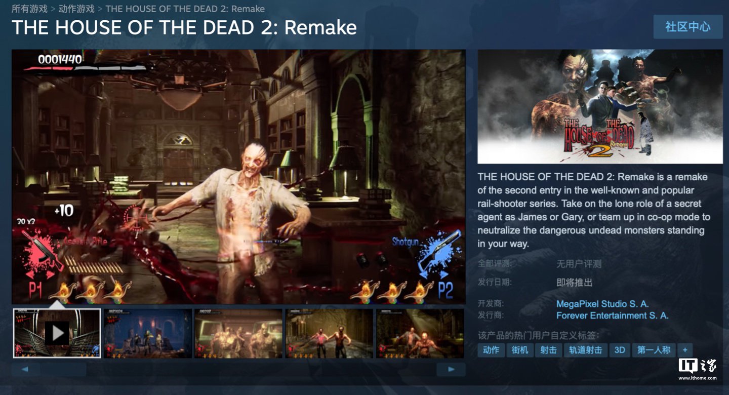 目前这款游戏(死亡之屋 2)的高清重制版《THE HOUSE OF THE DEAD 2:Remake》已正式公布,官方宣称本作将于今年春天登陆索尼 PS4/5、微软 Xbox、任天堂 Switch 和 PC 平台,但具体价格还未公布。