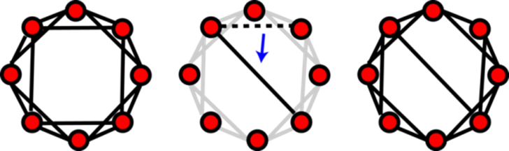 随后,瓦特和斯特罗加茨开始修改这个邻居网络的连接方式。他们随机选择一部分链接进行重新定向,方式是保持链接的一端固定,而另一端则连接到网络中随机选择的节点。由于网络中的大部分节点都不在任何一个最终连接到的节点的附近,因此重新建立的链接很可能会连接起两个原本距离较远的团体,从而大大缩短它们之间的距离。事实证明,只需一点点随机性的重连就足以缩短节点之间的平均距离,并且不会破坏已有的局部团簇:在原本平均距离很远的熟人网络之间增加少量几条“捷径”,就足以使他们的关系网络成为小世界。