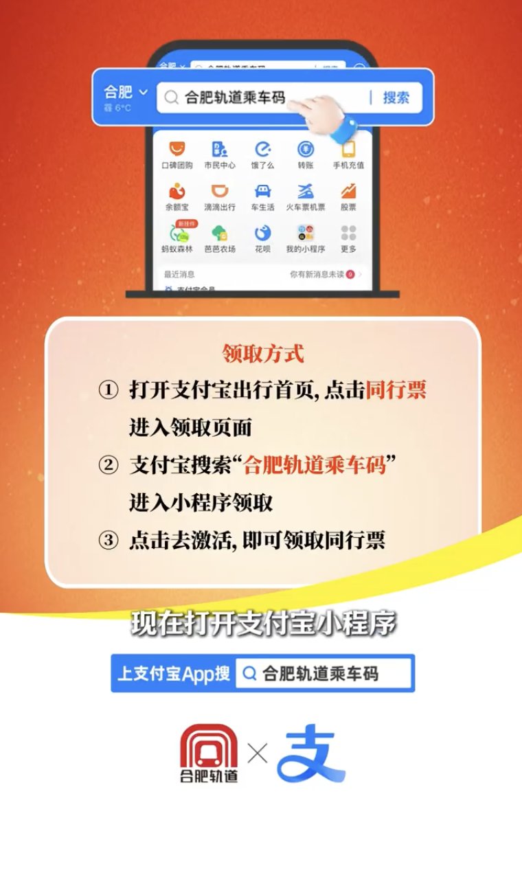 据官方介绍,用户可以打开支付宝,进入对应“合肥轨道交通乘车码”,点击“同行票”。之后即可激活相关功能,多人乘车费用一起支付,行程费用也可在乘车码小程序中查询。