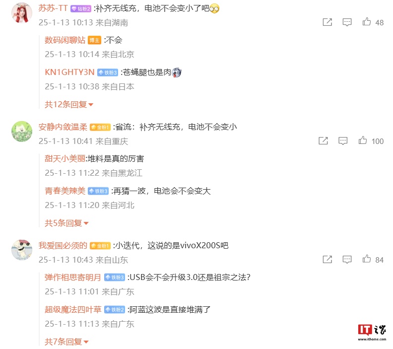 有网友提出了关于新机电池容量的问题:针对补齐无线充功能后,手机电池会不会变小,博主称“不会”。