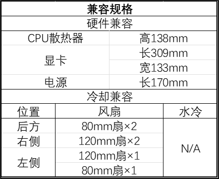 银昕 FLP01 机箱宽深高 440×362×170mm,体积 27.8L,支持 SSI-CEB、ATX 及以下尺寸主板,拥有 7+1 条 PCIe 扩展槽,具体硬件兼容规格如下: