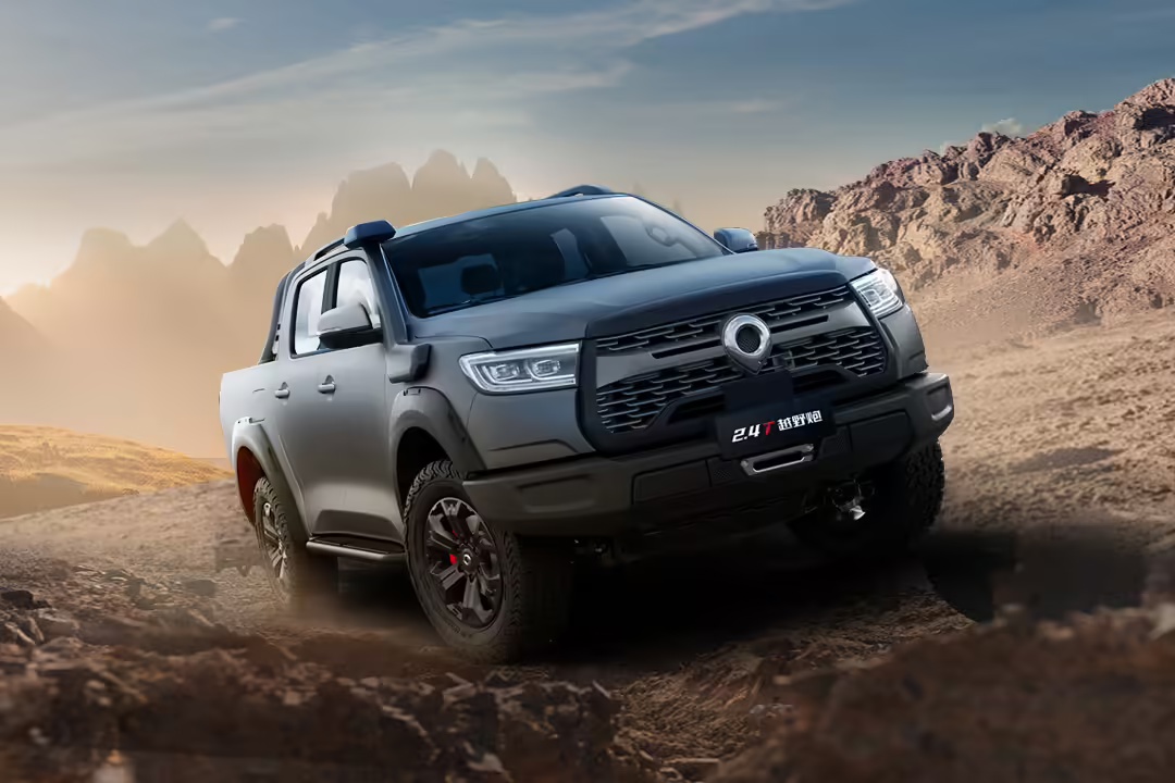 新车搭载 2.4T 柴油发动机,配备了 18 英寸越野 AT 轮胎,标配前后桥电控机械式差速锁,并搭载分时四驱系统和 T-MAX 绞盘。